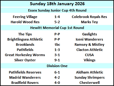 | Roman Rovers, Colchester Stars & Toosey all withdrawn - all results expunged. | ||||||||