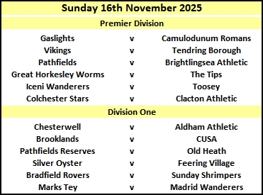| 26/10/2025 | Premier Division | Camulodunum Romans | 0-2 | Great Horkesley Worms | |